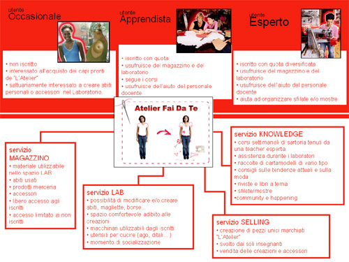 L’Atelier Fai Da Te vuole essere innanzitutto un vero e proprio luogo fisico che gli iscritti possano frequentare sentendosi a loro agio per dimostrare voglia di fare ed imparare: l’atelier mette a disposizione strumenti, conoscenze e materiali affinchè la clientela sia in grado di modificare i propri capi d’abbigliamento o di crearne altri.